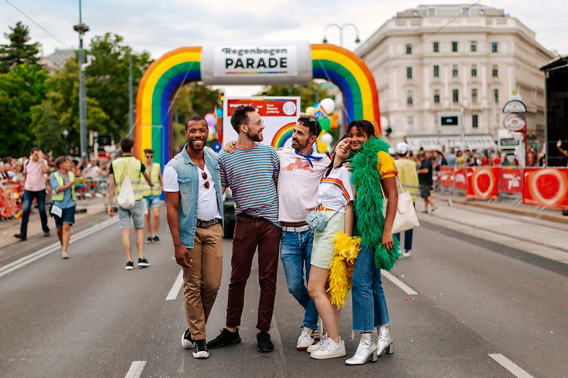 Schwule und lesbische Freunde auf der Regenbogenparade
