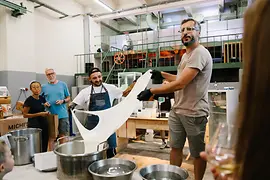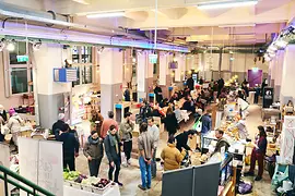 Direct contact with producers is also possible at the Markterei, a market hall located in a former hydraulic engineering laboratory in the 9th district. Every Friday and Saturday, Markterei opens its doors and offers producers a platform to showcase their food. Visitors can browse the stands, sample the products, and enjoy them at a large communal table in the center of the room. A pretty garden also invites guests to eat and drink outdoors. During the summer months, Markterei transforms into an urban Heuriger (wine tavern).